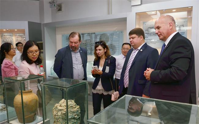 俄罗斯国立地质勘探大学代表团一行参观了地球科学博物馆、钱圆金融博物馆和宝石与材料工艺学院产学研基地。