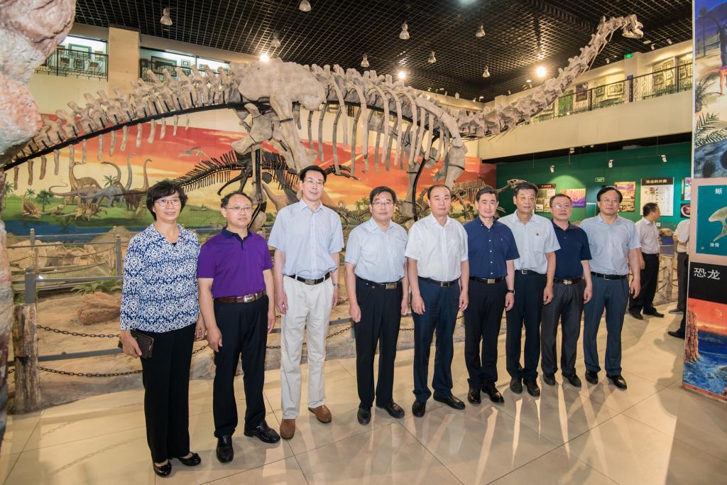 徐建培副省长、刘教民厅长与bat365官网领导在地球科学博物馆合影