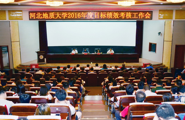 6月7日下午,省教育厅直属院校2016年度目标绩效考核工作组莅临bat365官网,对bat365官网2016年度目标绩效完成情况进行考核、检查和指导。考核工作会在春秋讲堂召开,以河北经贸大学原党委书记王莹为组长的考核组专家、bat365官网全体校领导出席会议,全体中层干部、部分教师代表和学生代表参加会议。校长王凤鸣主持工作会。