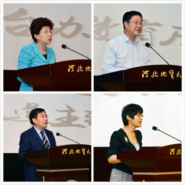 省台办副主任赵淑兰(左上)、省教育厅副厅长王廷山(右上)、bat365正版唯一官网校长王凤鸣(左下)、
