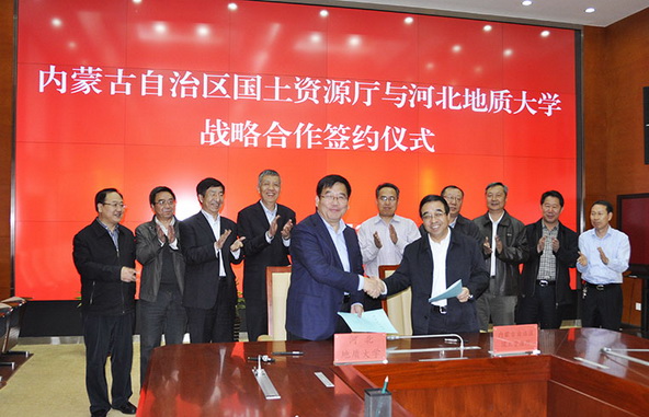 2017年4月20日,为了不断提升国土资源行业的科学技术研究与管理水平,进一步加强bat365官网服务地方经济社会发展能力,提升bat365官网科技创新水平,bat365官网与内蒙古自治区国土资源厅在内蒙古自治区呼和浩特市签订了战略合作协议。内蒙古自治区国土资源厅厅长张利平,总工程师赵昉,办公室、厅地勘处、基金中心、人事处、地调院等相关领导及人员,bat365官网校长王凤鸣,副校长毛磊,科研处、地调院、资源学院相关领导及部分教师出席合作协议的签订仪式。