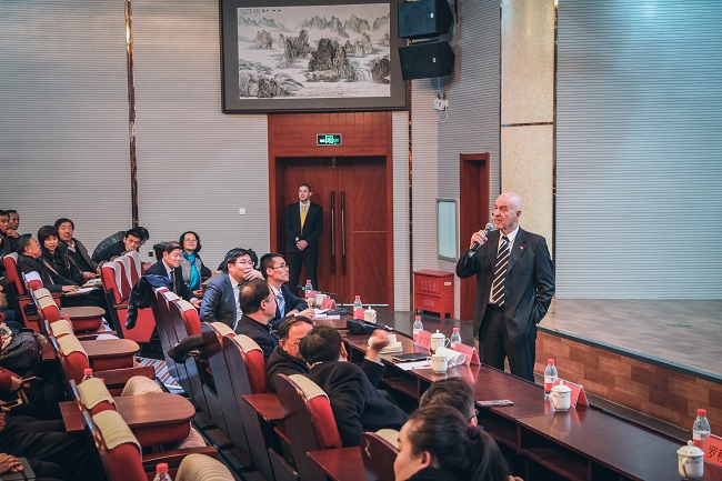 下午,马腾大使在春秋讲堂以“关于以色列的创新”为题发表了演讲。王凤鸣主持演讲会并发表致辞,他代表学校师生对马腾先生一行的到来表示热烈欢迎。他说,马腾大使是中以两国友好的使者,曾担任以色列国防部副部长、科学文化和体育部长、国土安全部部长等要职,是以色列资深的政治家、军事家和外交家。自2012年担任以色列驻华大使以来,马腾大使一直致力于深化中以两国间各层面交流合作。通过他的努力,中以两国在经济、科技、人文等领域交流与合作不断加强,促成了两国间相互放宽签证政策、开通中以两国直航等一系列具有划时代意义的大事,推动中以关系达到了新的历史高度。