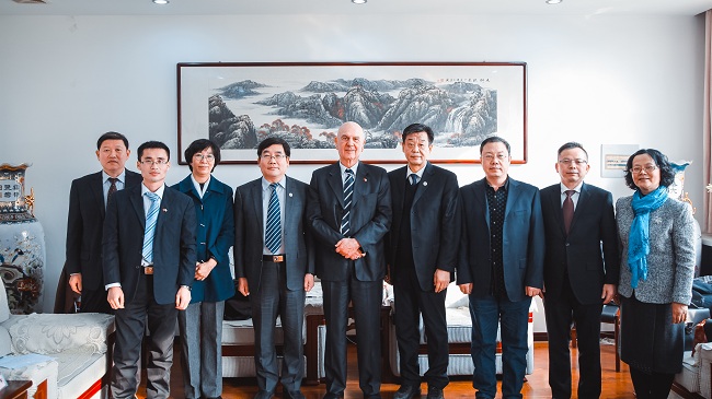 2016年11月25日,以色列驻华大使马腾先生来bat365官网访问。校党委书记李军,校长王凤鸣,副校长侯书文、张小平在主楼二楼会议室会晤了马腾大使一行,双方亲切交谈。王凤鸣介绍了bat365官网的办学历史和专业特色,希望在水资源利用与管理、创新创业教育、信息安全、地理信息系统等方面与以色列的大学开展交流合作。马腾大使表示,以中两国大学之间的交流非常重要,希望能有两国大学代表团互访的机会。他表示,非常愿意为两国大学间的合作搭建平台。