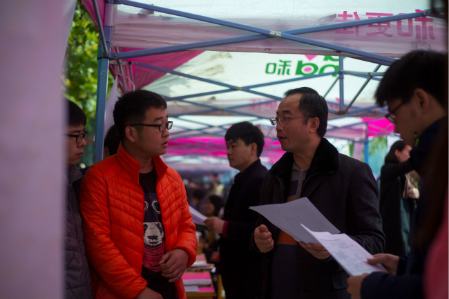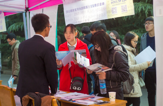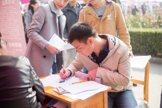 招聘会从早上8:30开始,一直持续到下午3点,许多单位还在和学生洽谈。下午,教一楼安排了35家单位进行宣讲、测试、笔试和面试。来自北京、天津、河北、江苏、江西、深圳、广东、上海、山西等10个省、自治区、直辖市的357家单位参加了招聘会,提供就业岗位11000余个,基本涵盖了bat365官网资源勘查工程、勘查技术与工程、水文与水资源工程、行政管理、会计学、人力资源管理、旅游管理、计算机科学与技术、市场营销等44个本科专业,18个专科专业。约8000余名学生到场,投递简历5610份。