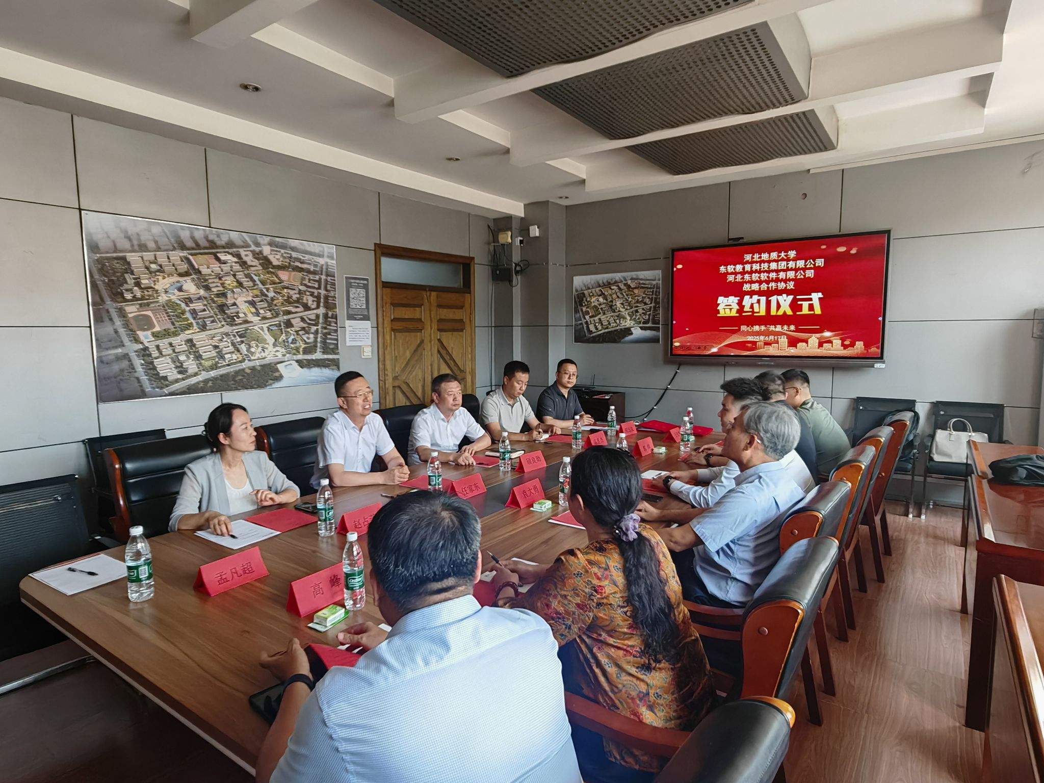 签约仪式上,任家东简要介绍了学校在学科专业建设、人才培养、科研创新和校企合作等方面的基本情况。他高度评价东软公司在信息技术领域取得的斐然成绩,他期待东软公司凭借技术与创新优势,能够在地质领域开辟新战场,双方携手打造具有标志性的产教融合成果,共同为行业发展注入新动能。