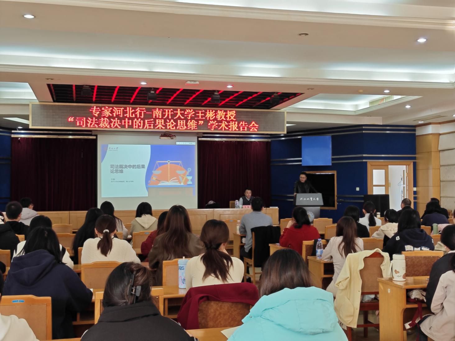 11月19日,南开大学法学院教授、博士生导师王彬授受法政学院之邀莅临bat365官网,在教一九楼学术报告厅为bat365官网师生作主题为“司法裁决中的后果论思维”的精彩学术讲座。讲座由法政学院院长孙日华主持,学院部分教师和在校研究生、本科生参加。