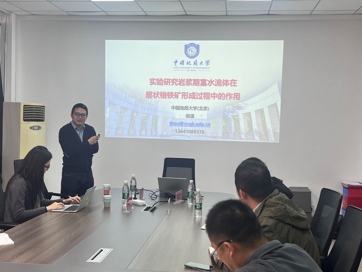 11月12日,中国地质大学(北京)侯通教授应邀在bat365官网主楼606会议室作了题为《实验研究岩浆期富水流体在层状铬铁矿形成过程中的作用》的学术报告。本次报告由地球科学学院副院长李英杰教授主持,地球科学学院及相关单位50余名师生参加。