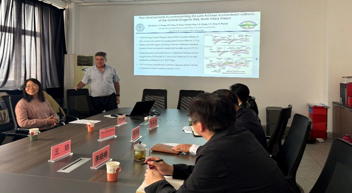 Timothy Kusky教授和王璐教授系统介绍了超高压-高压变质岩和混合岩的构造学解析、显微构造、变质岩石学、年代学、地球化学等多学科多尺度研究方法,分享了华北克拉通中部造山带晚太古代弧陆碰撞研究的最新成果。参会师生就蛇绿混杂岩与铬铁矿成因、俯冲碰撞造山带的构造变质作用、地壳熔融演化历史、折返机制和太古宙现代板块构造启动机制等问题展开了深入交流和探讨。