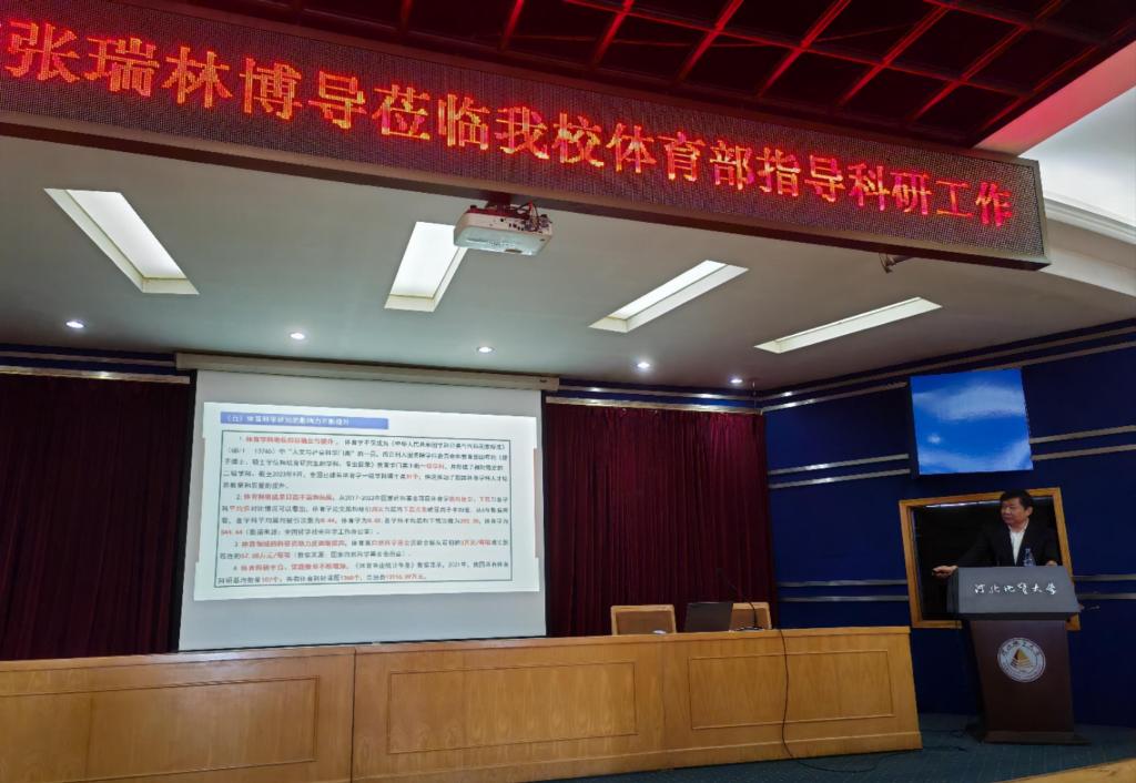 张瑞林教授就我国体育发展中的顶层设计、高质量发展面临的问题和发展途径做了精彩阐释,对当前制约我国体育科学研究的主要因素进行了详尽的分析,报告结束后张瑞林教授又在体育教学部会议室以《体育科学研究性质、类型及程序》为题,对申报国家社科基金的老师开展了面对面的指导。