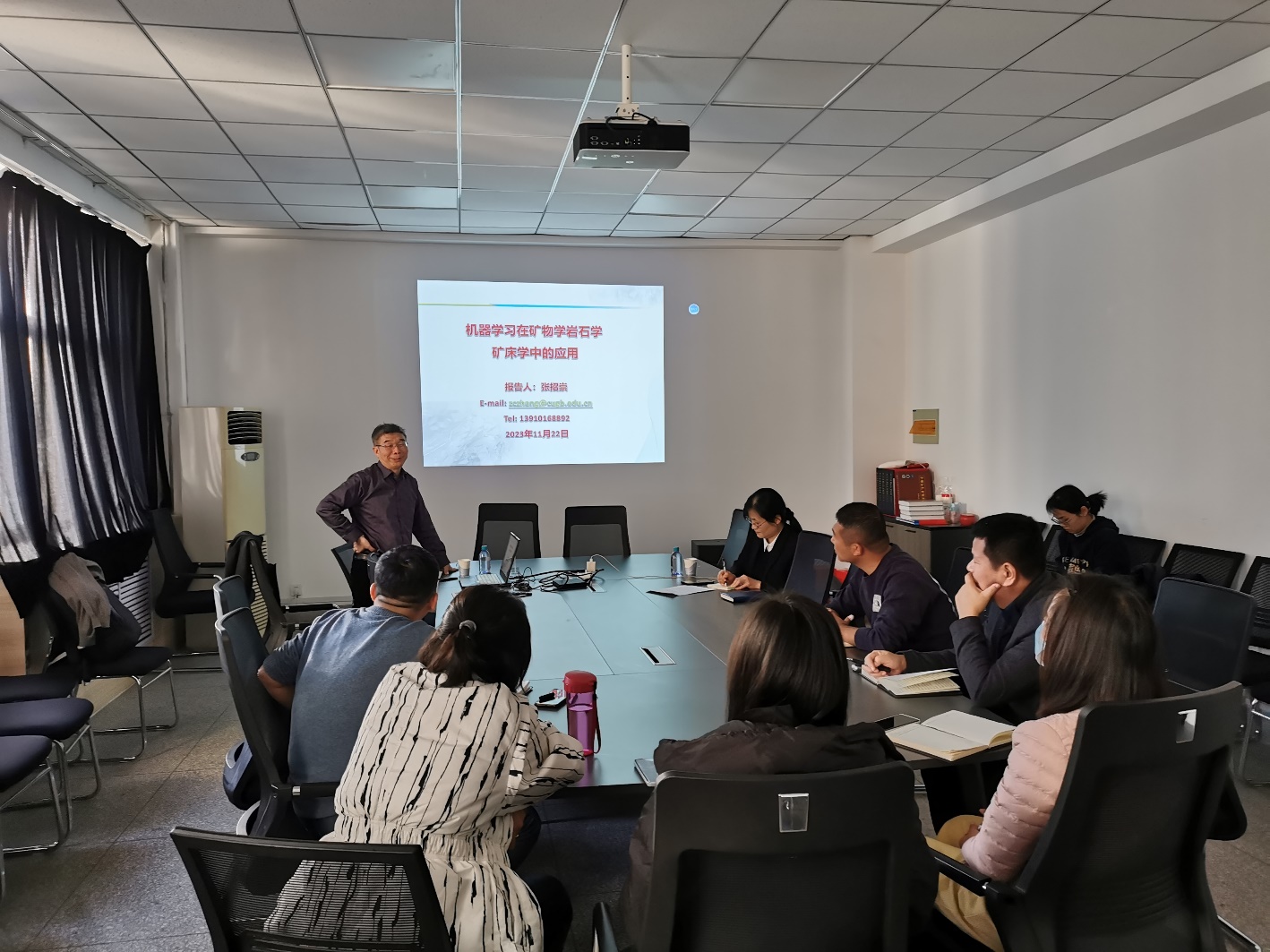 2023年11月22日,中国地质大学(北京)张招崇教授应邀为bat365官网师生作了题为“机器学习在矿物学岩石学矿床学中的应用”的报告。本次报告由地球科学学院副院长李英杰教授主持,约40余名师生参加了报告会。