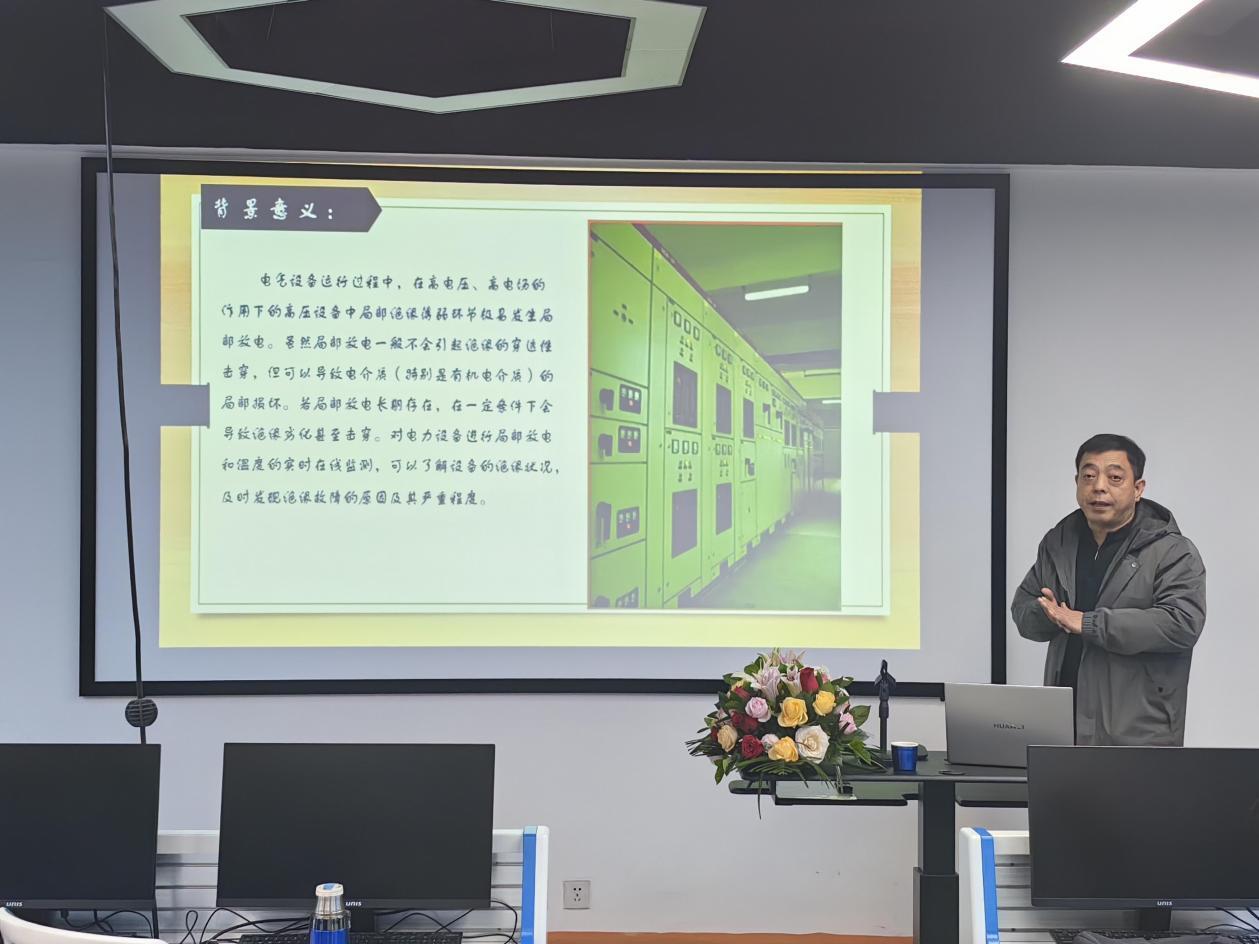 李思勉博士作了题为“光纤局放监测系统”的报告,介绍自己解决高电压高电场环境下电气设备局部放电问题的研究成果,从结构,原理,配置,创新和应用方面展示了科研和项目的研究过程。