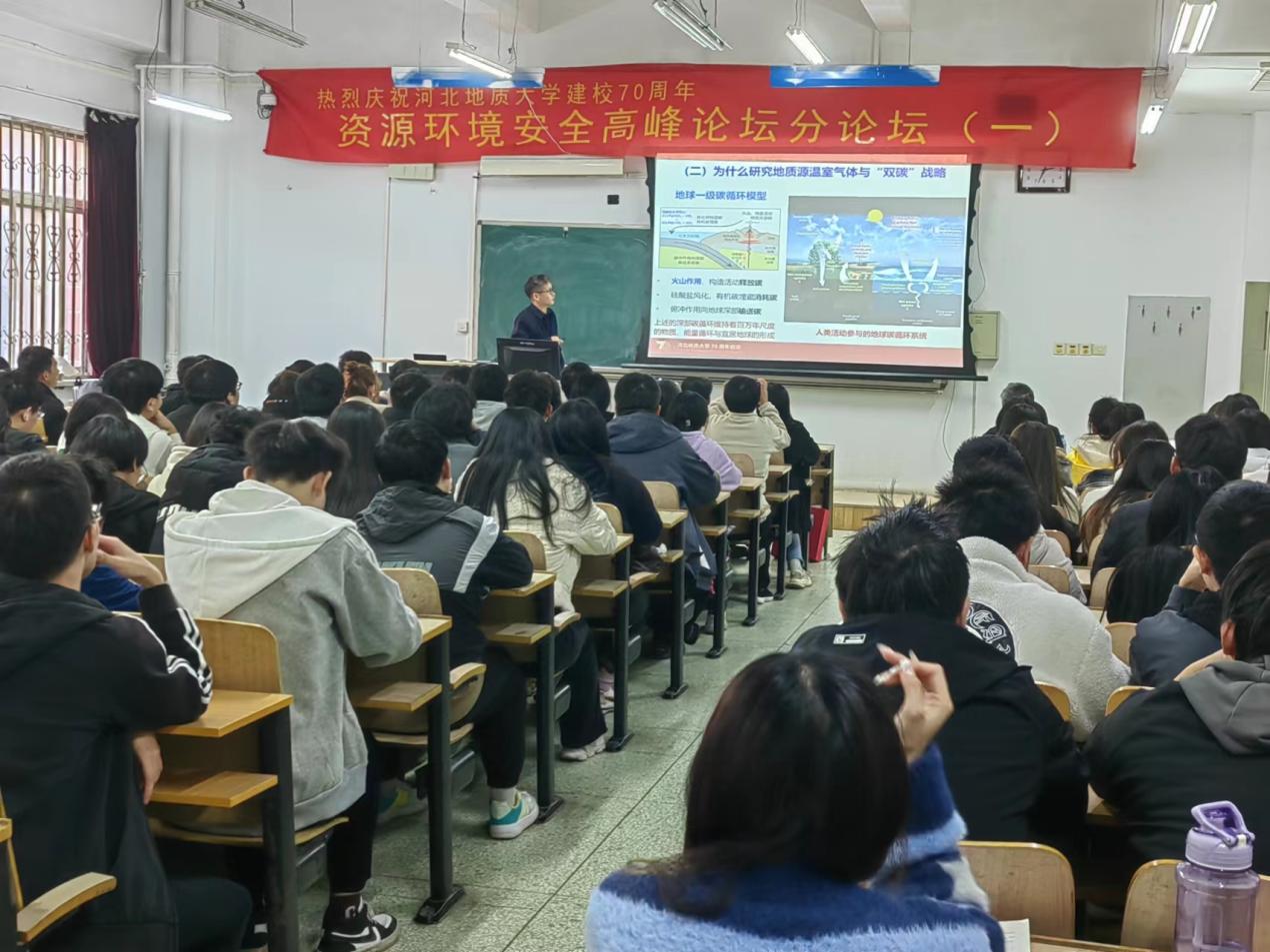 2023年11月18日下午,bat365官网优秀校友中国科学院地质与地球物理研究所郭正府研究员在教1-104作了题为“地质源温室气体与"双碳"战略”的学术报告。本次报告是bat365官网“九鼎讲座”系列讲座之一,由地球科学学院主办,bat365正版唯一官网教育发展基金会“九鼎讲座”基金赞助。报告由副校长闫军印教授主持,地球科学学院副院长李英杰教授、部分教师、研究生和本科生100余人参加了报告会。郭正府研究员围绕地质源温室气体与碳达峰、地质源温室气体与碳中和等进行了一场深入浅出的精彩报告。闫军印副校长对本次报告做了总结,对郭正府研究员在校庆70周年之际返校给师生带来的精彩报告表示衷心的感谢。