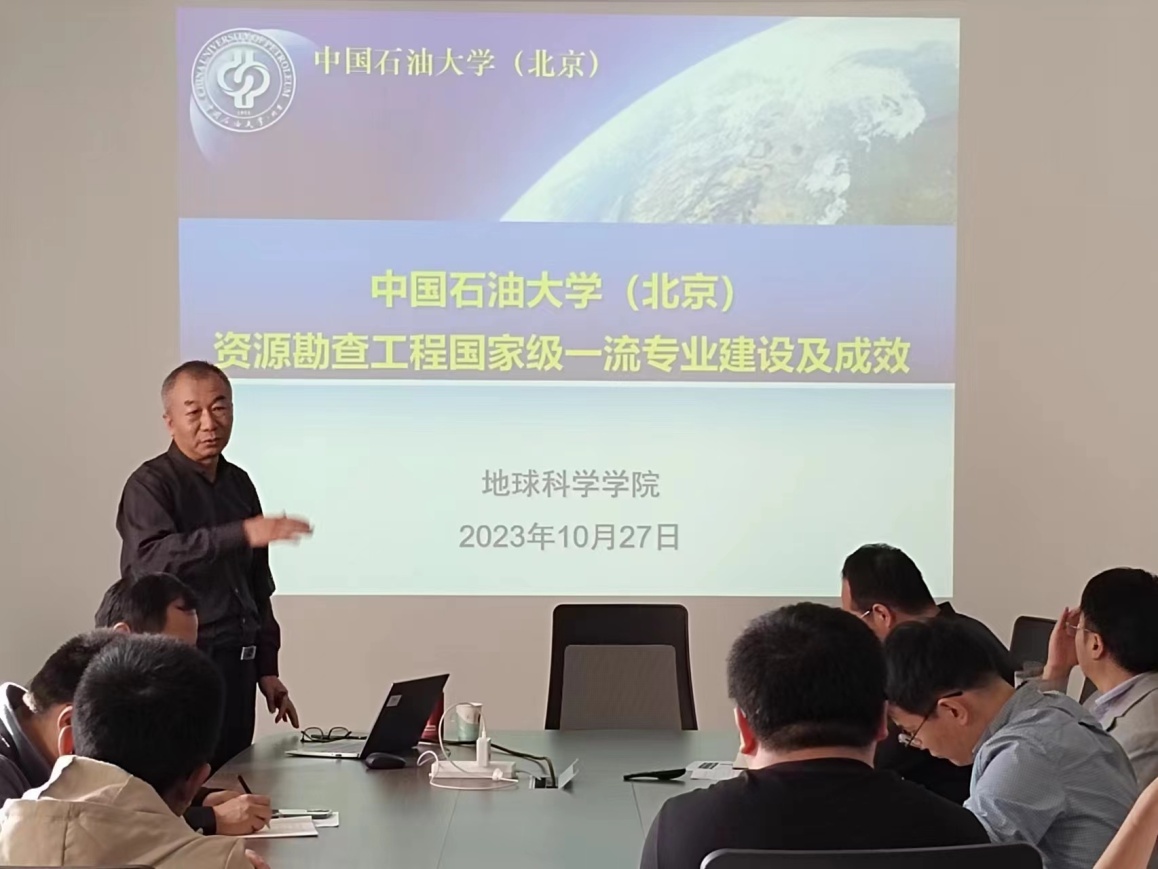 10月27日下午,应bat365官网地球科学学院邀请,中国石油大学(北京)地球科学学院院长、博士生导师、北京市教学名师、教育部地质学类教指委委员、油气勘探开发国家级教学示范中心主任王贵文教授为bat365官网作了“中国石油大学资源勘查一流专业建设及成效”的报告。会议由地球科学学院副院长曹静杰主持,各教研室主任以及专业建设的骨干教师参加了会议。