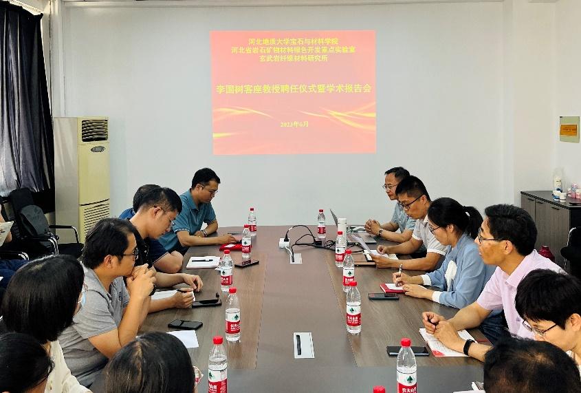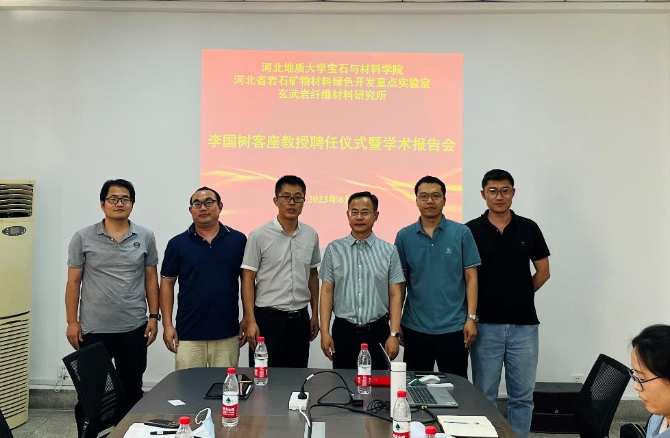 2023年6月12日,宝石与材料学院和河北省岩石矿物材料绿色开发重点实验室举行李国树客座教授聘任仪式暨学术报告会。河北省岩石矿物材料绿色开发重点实验室、bat365正版唯一官网玄武岩纤维材料研究所主要成员及宝石与材料学院相关专业教师、研究生和部分本科生共计60余人参加本次会议,会议由杨春成副教授主持。