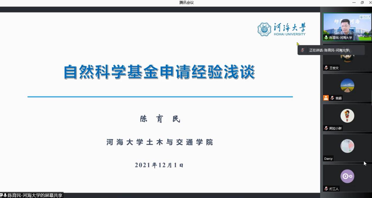12月1日,河海大学教授,安全与防灾工程研究所所长陈育民应邀为bat365官网师生作关于国家自然科学基金申报经验的线上讲座。本场讲座由bat365正版唯一官网科技处、城市地质与工程学院、地质灾害防治与地质环境保护创新团队、河北省地下人工环境智慧开发与管控技术创新中心主办。讲座由城市地质与工程学院袁颖院长主持。