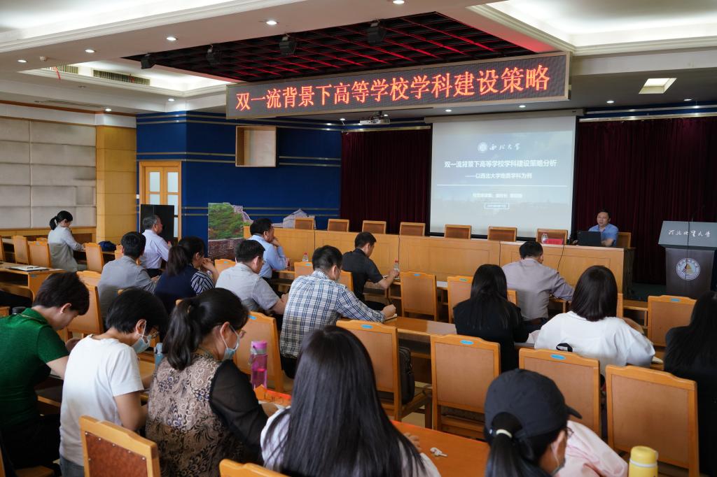 会上,赖绍聪教授介绍了国家“双一流”建设的基本形势,强调了学科建设在高校发展中的重要地位,厘清了学科建设的内涵和方法,并以西北大学地质学科为例,详细介绍了西北大学“明确学科定位、凝练特色方法、汇聚人才队伍、服务社会发展”的学科建设策略和取得的成效。整个报告内容丰富,对于学校凝练学科特色,推进学科建设具有重要的参考意义。