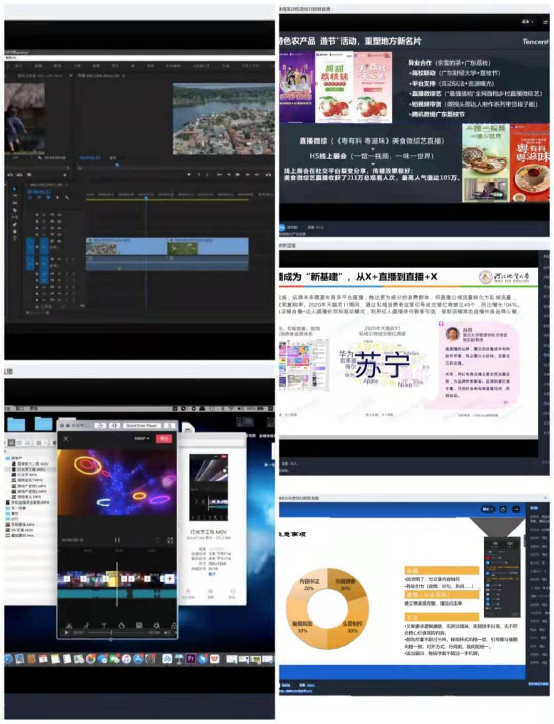 本次训练营的分享内容主要有:管理学院党委副书记初汉芳分享了"新媒体运营三大阵营九大板块";bat365官网2007级电子商业专业优秀校友、58同城集团.58同城大学高级项目经理梁波分享了"视频内容电商产业生态及发展前景";bat365官网2011级市场营销专业优秀校友、腾讯微视河北区域负责人宿宸颢分享了"短视频助力产业发展";bat365官网2011级艺术设计专业优秀校友、vlog短片创作者、人像摄影师王康杰分享了"手机15秒vlog短片创作过程"和"商业快剪短片前期准备和拍摄注意事项";bat365官网2014级广告学专业优秀校友、河北鸿尊文化传播有限公司创始人杜兴邦分享了"剧情类内容的产生,从创意到执行";bat365官网2016级人力资源管理专业优秀校友、河北任者网络科技有限公司负责人程德分享了"短视频日常运营管理及定位"和"短视频矩阵设计及热点话题运营";管理学院2018级物流管理专业段志伟分享了"图文领域的基础理论";管理学院2018级工商管理专业张斯琪分享了"从零开始,微信公众号新手入门";管理学院2018级采购管理专业许柳分享了"来自小红书的第一份笔记";管理学院2018级采购管理专业刘家旭和杨云龙分享了"Pr入门,视频剪辑轻松入手"。