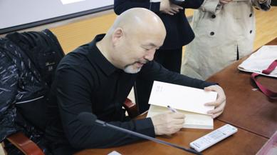 郑标向同学们赠送本人撰写书籍并亲笔签名,表达对同学们的希望和鼓励