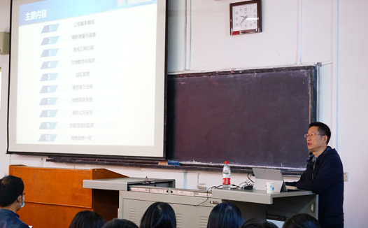 刘玉贤教授在报告中首先简要介绍了其目前在深圳开展的科研工作概况,而后通过对摄影测量与遥感、激光三维扫描技术、文物数字化保护、园区管理、城市地下空间等八个方面的应用技术进行了详细讲解,展示了专业设备仪器拍摄构造的一些城区建筑三维建模,如:鹤湖新居、中英街、东莞会馆等。特别是在车载激光三维扫描测量技术应用、管道缺陷智能识别技术和激光三维重建技术三个方面,通过运用项目成果与实际案例的呈现展开了细致地讲解。刘玉贤教授通过将理论知识与典型案例相结合的方法,让各专业学生更加直观的了解到专业知识在相应专业领域中的应用情况。