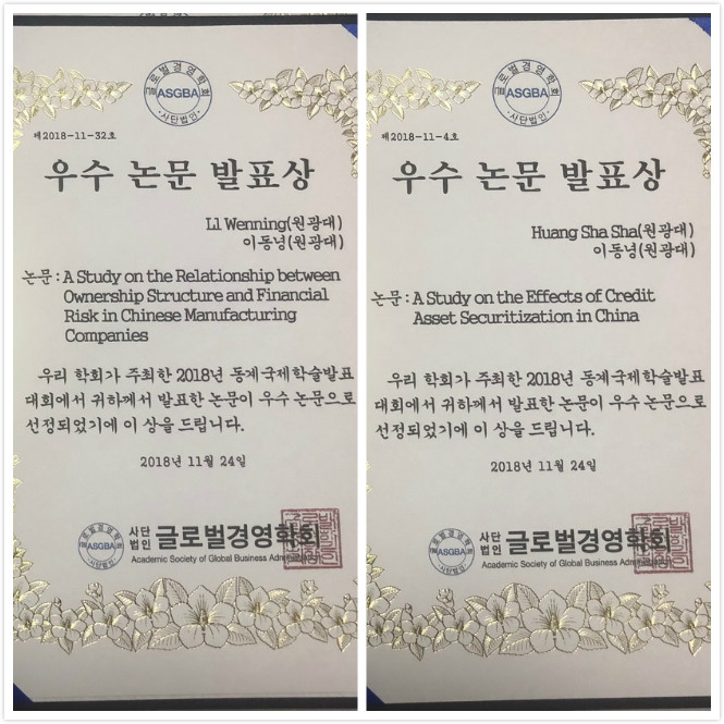 应大会邀请,bat365官网会计学院黄莎莎、李文宁等2位教师参加学术会议。黄莎莎发表了《中国信贷资产证券化的影响研究》(《A Study on the Effects of Credit Asset Securitization in China》)学术报告,李文宁发表了《中国制造公司股权结构与财务风险关系的研究》(《A Study on the Relationship between Ownership Structure and Financial Risk in Chinese Manufacturing Company》)学术报告,同时,与会老师与首尔大学、高丽大学、延世大学、汉阳大学等若干大学的数百名专家与学者进行了学术讨论和分享,受到了一致好评。