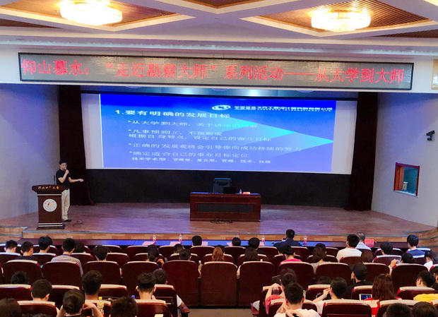 李宏义回顾了自己在校期间的成长故事,对母校的眷恋之情溢于言表。他以“成长之路”为主线,从明确发展目标、敢于承担责任等七个方面对如何从青年人成长为大师向大家进行了经验分享与阐释。心之所向、素履以往,李宏义生动的语言和鲜活的案例博得了在场师生的阵阵掌声。