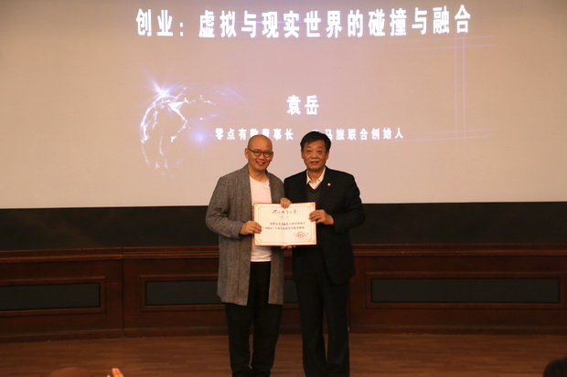 11月25日下午,春秋讲堂座无虚席,零点有数董事长、飞马旅联合创始人袁岳先生来校作题为“创业:虚拟与现实世界的碰撞与融合”的主题演讲。校党委书记李军出席并讲话,商学院院长苗泽华、副院长兼MBA教育中心主任王汉新、副书记董莉、副院长白翠玲和部分师生代表、MBA学员近400余人聆听了演讲。