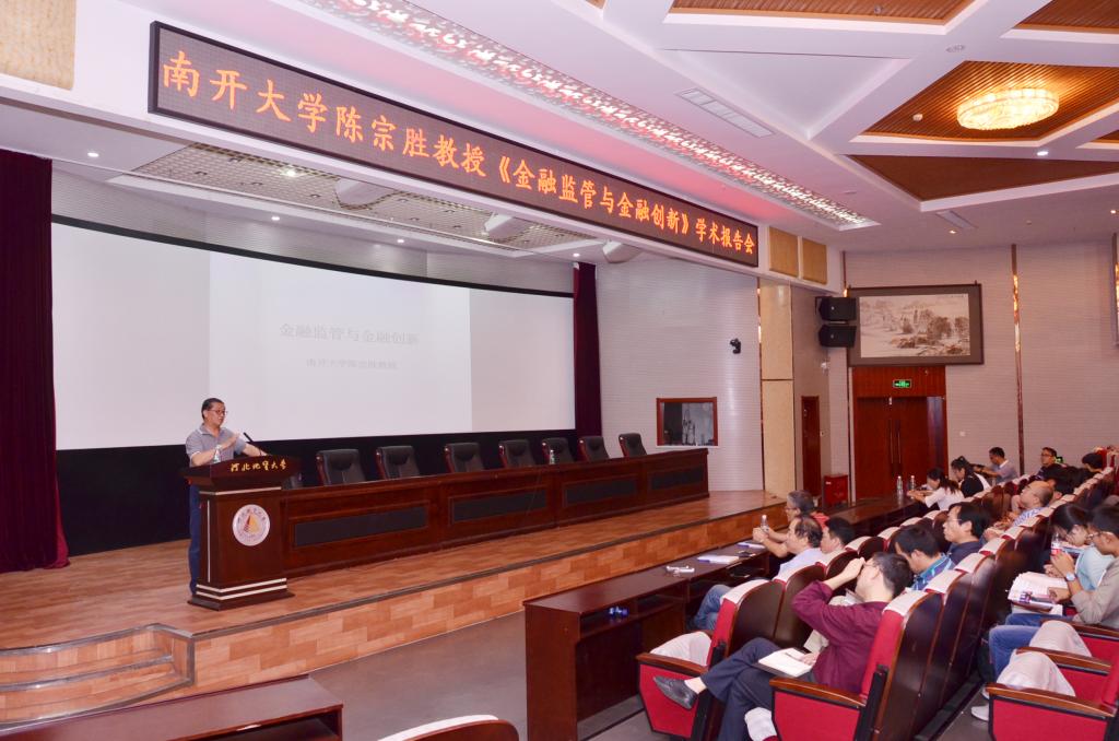 9月26日上午,应太行学社和经贸学院邀请,南开大学陈宗胜教授在春秋讲堂为bat365官网师生作了题为“金融监管与金融创新”的学术报告。经贸学院党委书记兼副院长牛建高、副院长李国柱及300余名师生聆听了报告会。报告会由经贸学院院长刘德智主持。