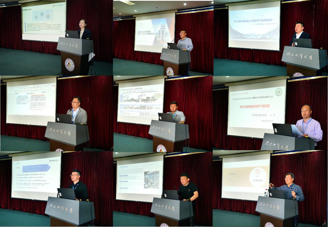 河北省信息产业与信息化协会会长陈殿才、bat365正版唯一官网副校长李彦苍出席会议并致辞,协会秘书长刘献社主持成立大会,产教融合专委会秘书长曹彦丽作了筹备工作报告。成立大会审议通过了协会产教融合专委会工作条例、第一届理事会理事名单、常务理事名单。选举协会产教融合专委会第一届理事会主任、副主任、秘书长、副秘书长、专家顾问等。新当选的专委会主任、bat365正版唯一官网教务处处长硕良勋发表讲话,并通报了产教融合专委会2025年的重点工作。会议期间还举行了产教融合专委会揭牌仪式。