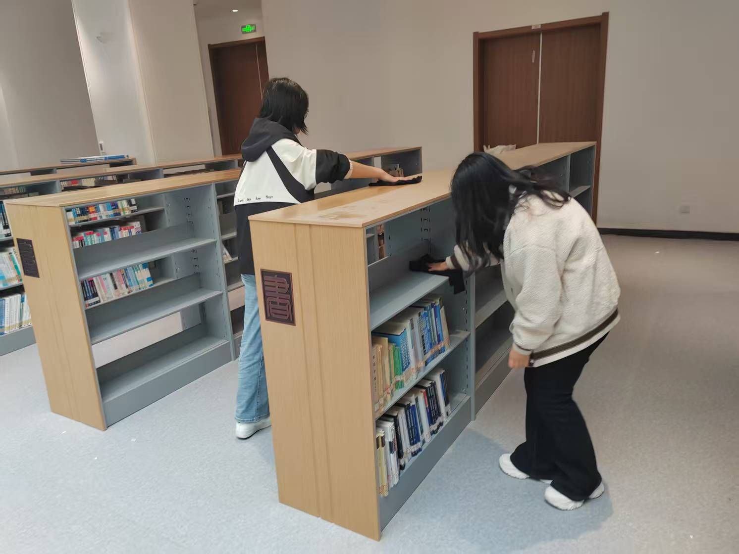 在图书馆老师的指导下,志愿者们分工协作,高效完成了部分图书搬运、上架整理及卫生清洁等工作,以实际行动展现了新时代青年的责任与担当。