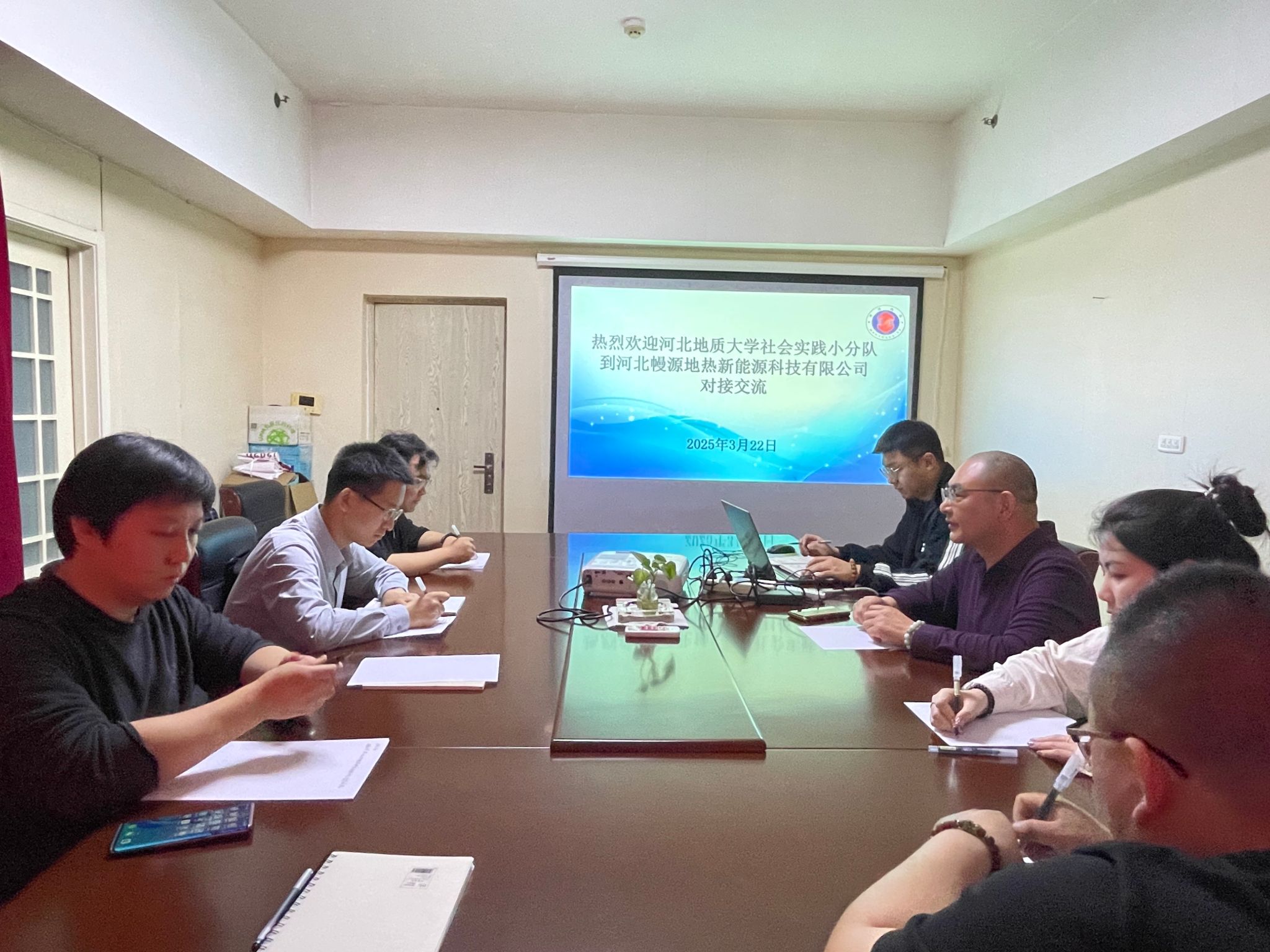 实践团队首站来到河北幔源地热新能源科技有限公司,与企业技术团队就地热资源开发、温泉康养产业、智慧农业应用等议题展开深入交流。双方还就创新科技特派员服务模式达成初步共识。