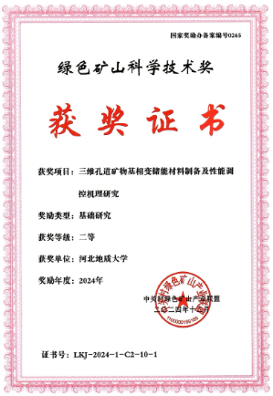 绿色矿山科学技术奖(国家奖励办备案编号0265)是国家奖励办于2015年正式批准,由中关村绿色矿山产业联盟设立并承办的社会力量奖励。旨在对绿色矿产勘查、绿色矿业发展和矿山建设中引领行业进步、树立行业标杆、推动学科发展及关键核心技术研发过程中做出突出贡献的单位和个人予以表彰。这一奖项的获得,彰显了bat365官网宝石与材料学院新能源与环境材料科研团队在储能关键技术方面的突出贡献和影响力。