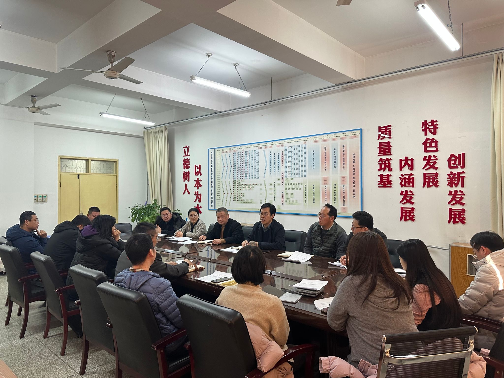 赵永强指出,各教学单位要重视教学检查中发现的问题,严格自查,分析原因,制定针对性的整改计划与措施,明确责任人与整改时限,确保每一项问题都能得到有效解决。针对学校本科教育教学审核评估工作,各教学单位要形成一把手牵头、全员参与、上下联动、协同配合的工作格局,统筹谋划,推进工作开展;要根据评估时间要求,倒排工期,形成任务时间表,有组织、有计划开展工作,充分利用好寒假时间,对标建设,体现增值性评价成果;要谋划好下学期工作安排,合理安排好日常教学工作与审核评估工作的有效融合。赵校长强调,大家要以本科教育教学审核评估为契机,发现问题,持续改进,促进学校的教育教学工作上水平、出成绩、提质量。