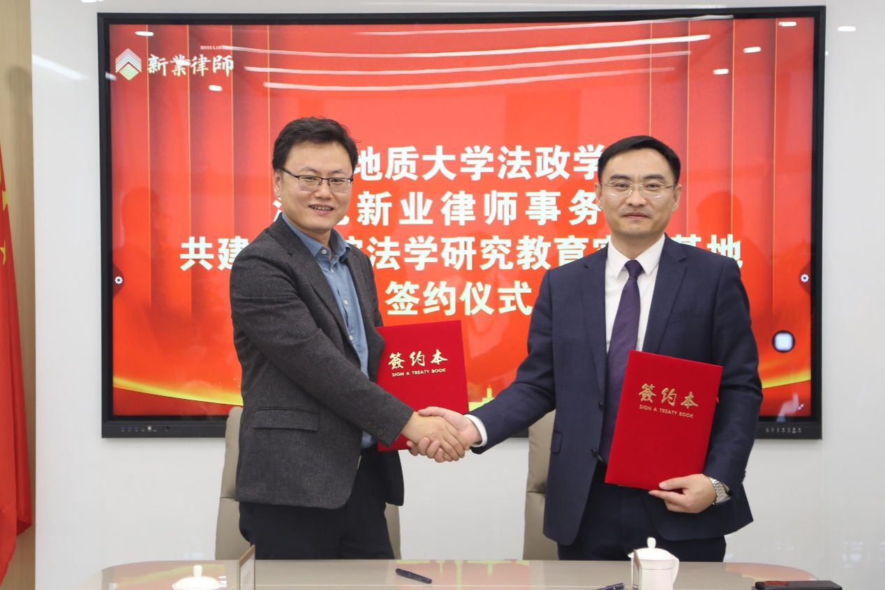 孙日华表示新业律师事务所在业内成就斐然,对新业律师事务所提供的珍贵平台和宝贵实践机会表示感谢。孙日华进一步介绍法政学院专业情况、特色学科等,表示新业律所在房地产、矿产等领域的深耕,契合学校地质特色,双方理念同一、领域契合、充满活力,对未来合作信心十足。随后孙日华和李金海签署了院所战略合作协议。