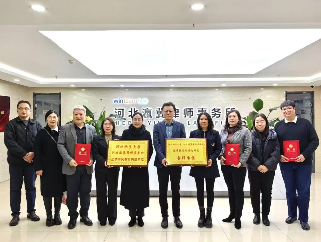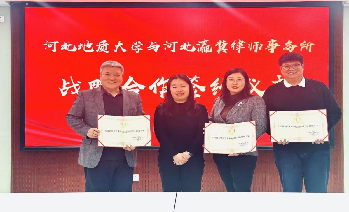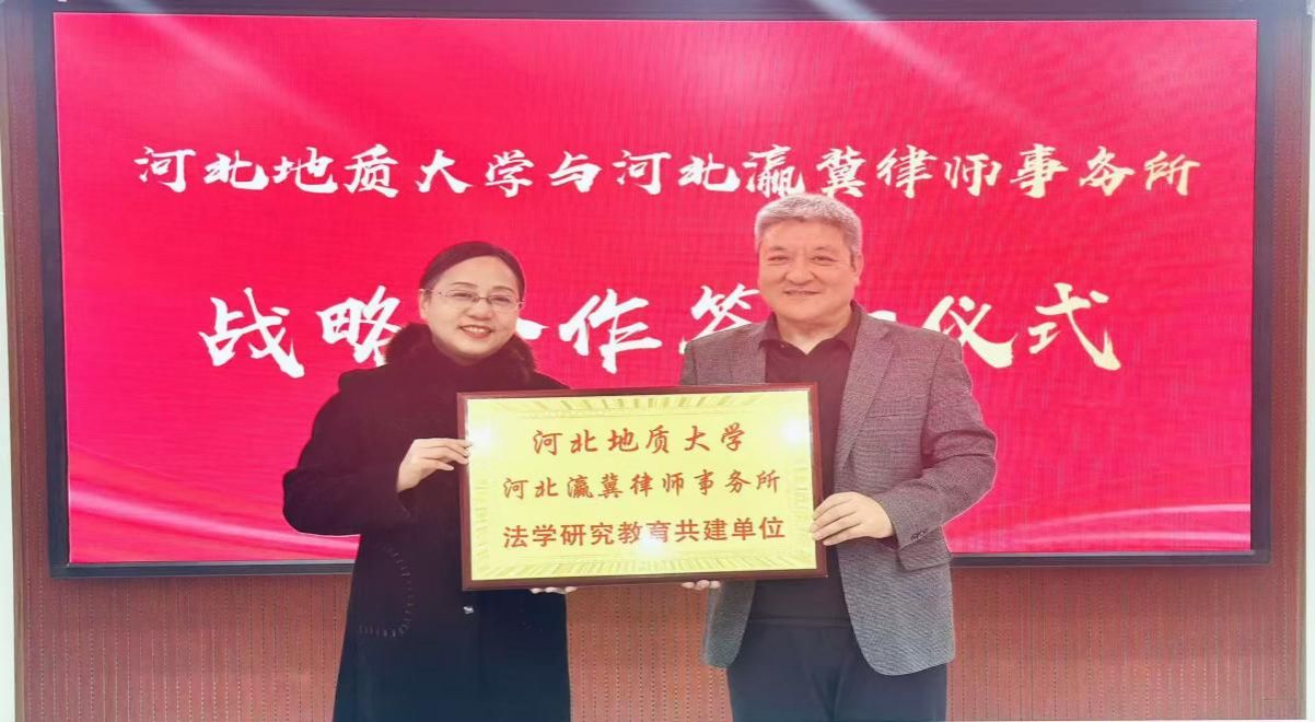 为加快促进法学理论与实践的深度融合,深入贯彻“产学研”合作模式,达到拓岗育才目标,12月25日,bat365正版唯一官网法政学院与河北瀛冀律师事务所共同举办战略合作签约暨揭牌仪式。bat365正版唯一官网法政学院党委书记董莉、法政学院院长孙日华、法政学院副书记朱晓玲、法政学院环境与资源保护法教研室主任葛丽明,瀛冀律师事务所主任梁英伟、执行主任陶峰英、婚姻事务部主任王维亚、专职律师龚浩、石硕、李宏伟、柳立龙、邢文晶等参加本次仪式。