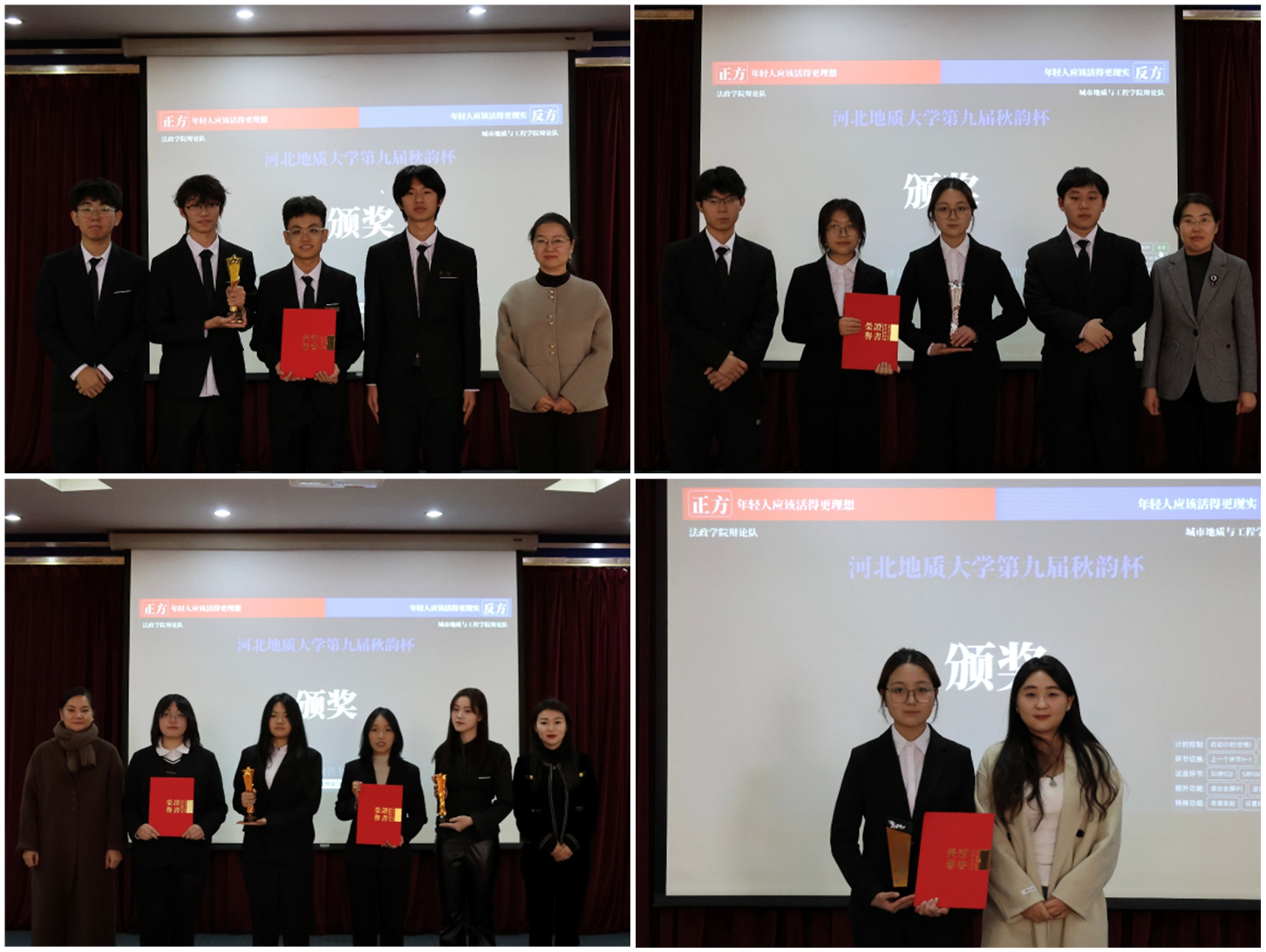 校团委书记马沁芳、法政学院团委书记程玥溪、城市地质与工程学院团委书记裴文思、校团委老师石金利、艺术学院辩论队教练齐子莹同学作为评委出席了本次决赛。来自各学院的120余名辩论爱好者前来观赛。
