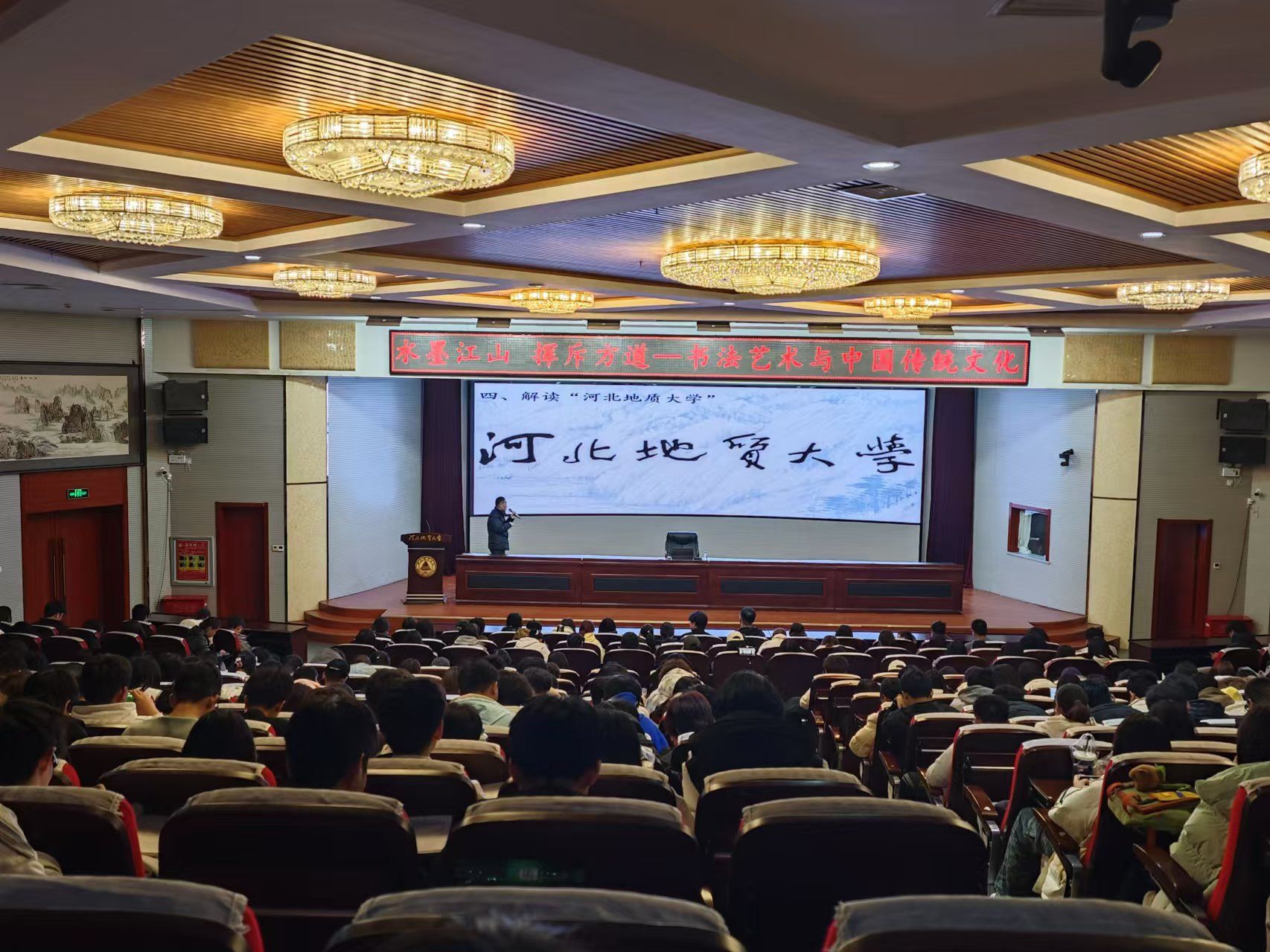 为加强学校美育的育人功能,弘扬中华美育精神,以美育浸润学生,提升学生文化理解、审美感知素养,丰富校园精神文化生活,强化学校山水文化建设。11月29日,校团委在春秋讲堂举办“水墨江山 挥斥方遒——书法艺术与中华传统文化”专题讲座。此次讲座的主讲人为bat365正版唯一官网团委老师、中国书法家协会会员、河北省美术家协会会员田文彦老师。来自各学院的300余名学生现场聆听讲座,共同领略书法艺术与中国传统文化的深邃魅力。