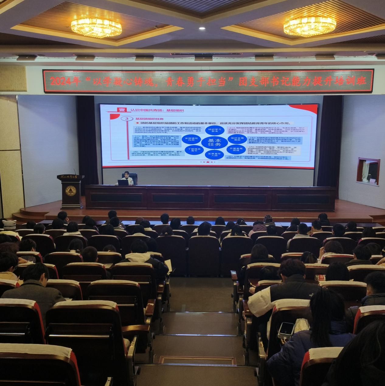 为深入贯彻习近平总书记关于青年工作的重要思想,落实习近平总书记关于加强新时代团员队伍先进性建设的重要指示精神,提高团干部的综合素养和工作能力,11月28日,校团委在春秋讲堂举办了2024年“以学凝心铸魂,青春勇于担当”团支部书记能力提升培训班开班仪式。