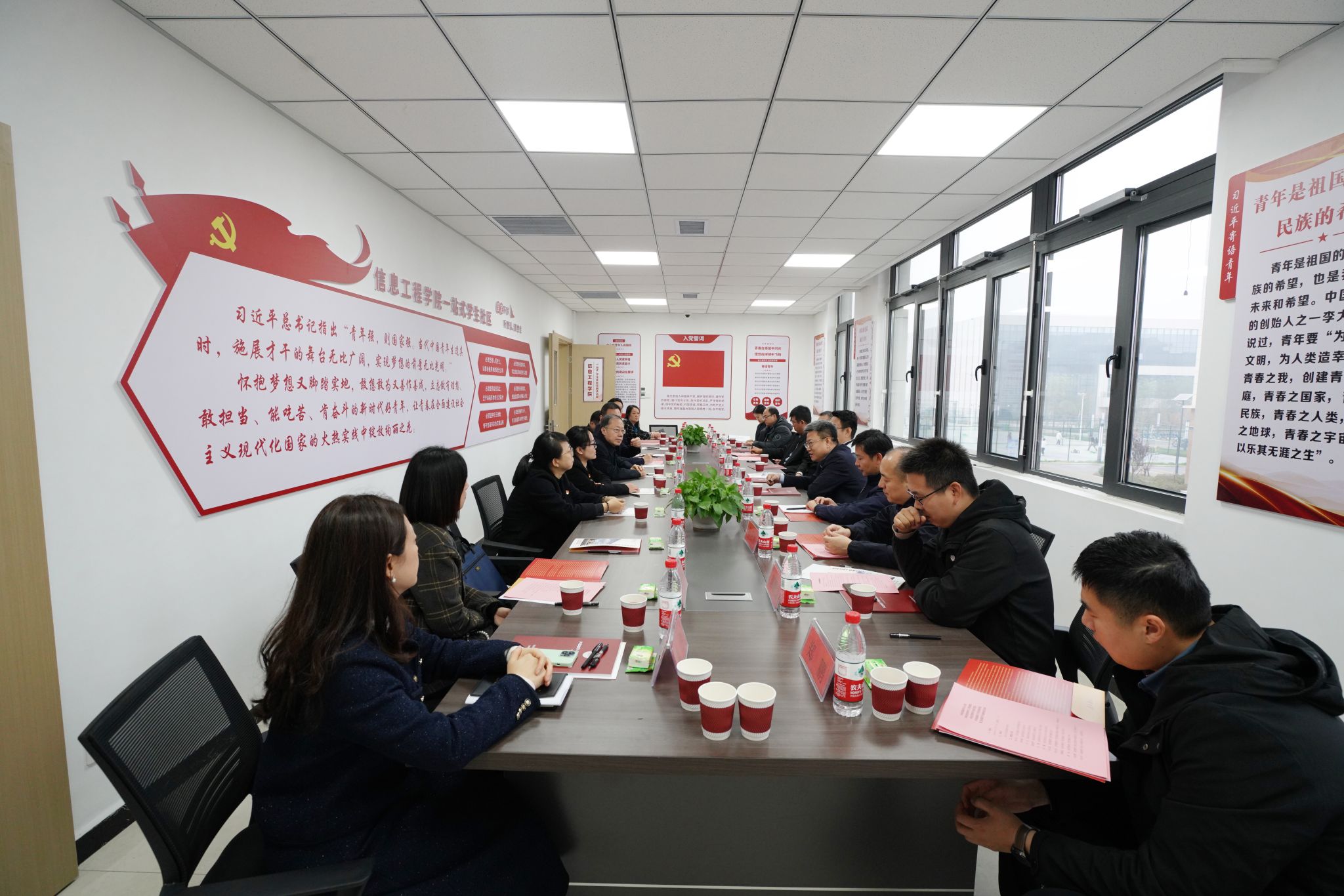 在“一站式”学生社区活动室,全体同志共同学习了党的二十届三中全会、全国教育大会精神,围绕本支部的党建工作进行了交流,对bat365官网党员发展规范工作给予了充分肯定,对教学科研与党建融合的双创工作提出了意见建议。