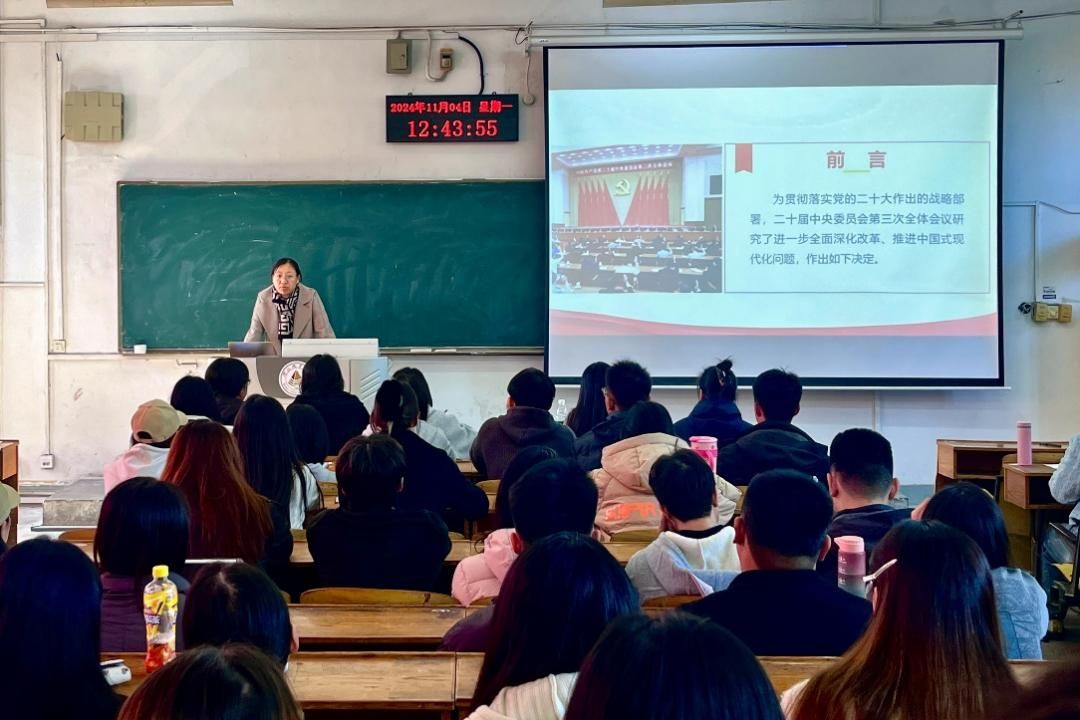 11月5日,院长赵志策老师继续为同学们讲解学习贯彻党的二十届三中全会精神的专题内容,向同学们讲述了中国式现代化的中国特色和本质要求,并强调要深入学习贯彻党的二十届三中全会精神,坚定不移地贯彻党的指导思想,开拓创新,不断前进,永葆生机和活力。赵老师同样以自己的亲身经历激励大家要增强时代使命感和历史责任感,争做新时代有为青年。