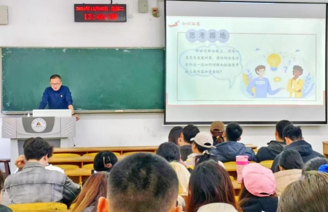 11月7日,副院长郑新涛老师为学员们开展了全面深化党章学习的专题讲座,强调党章是党员的必修课,深入了解党章的历史沿革以及党员的权利与义务,严肃党内政治生活。他强调:要用党章规范自己的言行,自觉开展批判与自我批评,遵守党的纪律,积极完成党组织交代的任务。