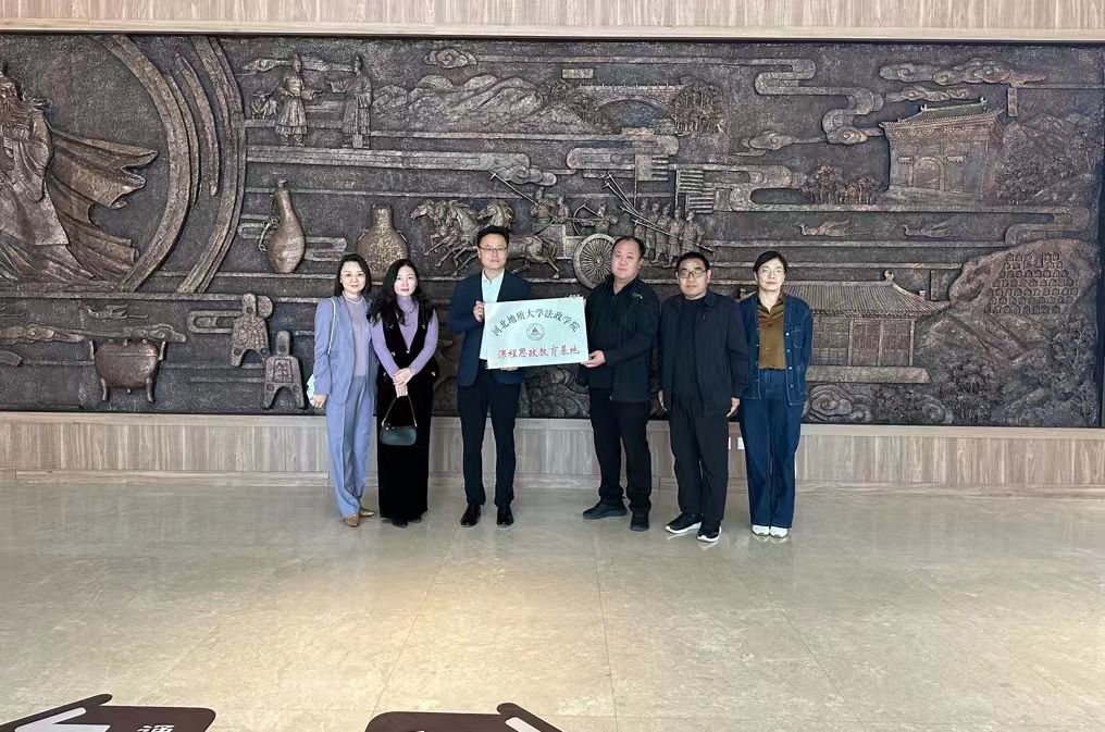 10月16日下午,bat365正版唯一官网法政学院与行唐县文旅局共建课程思政教育基地挂牌仪式在行唐博物馆举行。bat365官网法政学院院长孙日华、法学系主任李慧英、公共管理系主任王丽慧、环境与资源保护法教研室主任葛丽明以及行唐县文旅局局长卢彦冬、行唐博物馆负责人和工作人员参加活动。
