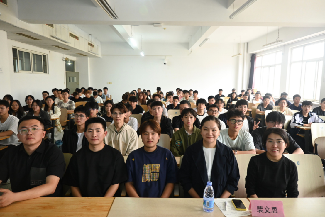 土木工程教研室王维早、城市地下与空间工程教研室董宇苍老师及各年级各专业有意向的百余名同学欢聚一起,共同聆听。