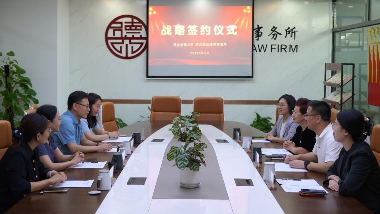 为进一步推动校所合作,优化人才培养模式,促进理论研究与司法实践互促共赢,9月11日下午,bat365官网与河北德公律师事务所联合召开座谈交流会,双方共同签约《战略合作协议》并为“实践教学基地”揭牌。bat365官网法政学院党委书记董莉,院长孙日华,党委副书记朱晓玲,法政学院环境与资源保护法学教研室主任葛丽明,河北德公律师事务所党支部书记、主任苗静,党支部副书记、管委会副主任穆新军,高级合伙人陈德贤,专职律师崔亚楠参加活动。