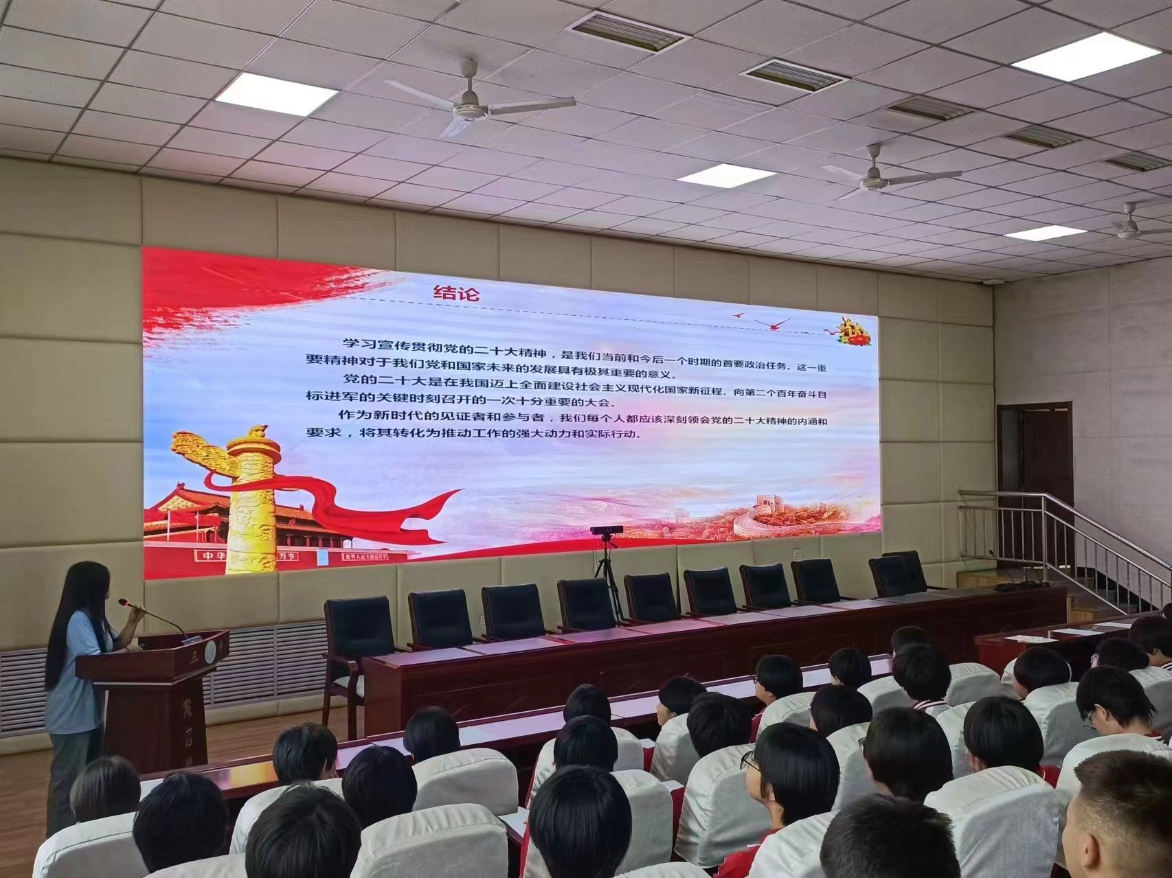 整场宣讲会,不仅是一次知识的传递,更是一次心灵的洗礼。蔚县城第三中学的师生们反响热烈,表示此次宣讲活动内容丰富、形式新颖,不仅涵盖了党的二十大精神的精髓要义,还巧妙融入了生动实例与互动环节,使得抽象的理论变得鲜活而具体,让师生们对党的二十大精神有了更加深刻且直观的认识。学生们深受鼓舞,更加坚定了为实现中华民族伟大复兴的中国梦贡献青春力量的决心和信念。他们深知,作为新时代的青年学子,肩负着实现中华民族伟大复兴的历史使命,因此必须立志成为德智体美劳全面发展的社会主义建设者和接班人,以实际行动践行党的二十大精神,为国家的繁荣富强贡献自己的青春力量。