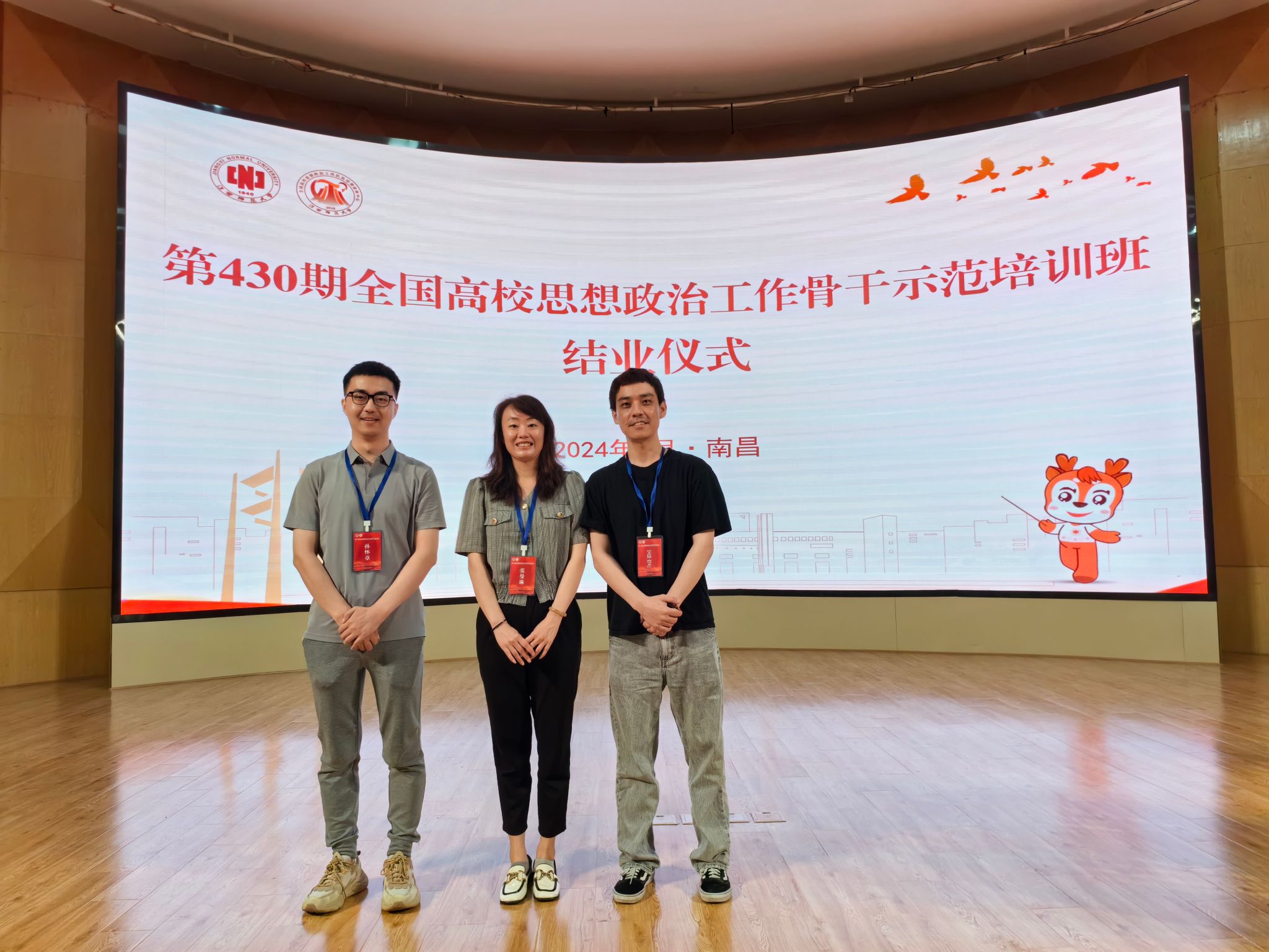为认真学习宣传贯彻习近平新时代中国特色社会主义思想和党的二十大精神,深入实施“时代新人铸魂工程”,全面提升高校思想政治工作队伍素质能力,切实推动高校思想政治工作高质量发展,6月18日至21日,由教育部思想政治工作司主办,高校思想政治工作队伍培训研修中心(江西师范大学)承办的第430期全国高校思想政治工作骨干示范培训班成功举办。bat365官网张曼琳、哈木拉提·阿里木江、孙怀章三名辅导员作为河北省省属高校代表参加了此次培训。