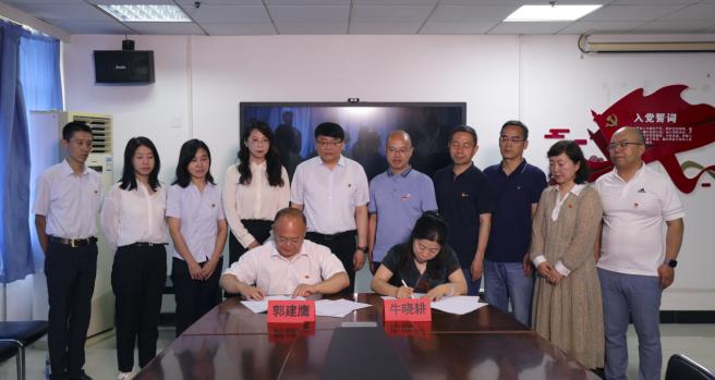 为进一步强化地经渗透、产教融合的办学特色,提升学院服务地方、服务行业的能力,在前期沟通交流的基础上,经济学院与石家庄市国有资本经营集团有限公司(以下简称“国经集团”)于6月14日在综合楼806召开了校企合作签约仪式暨党建共建交流会。国经集团副总经理杨占军和武文娜一行16人和经济学院党委书记黄本春、原院长牛建高、副院长牛晓耕、党委组织员孟亚君以及教工二支部全体党员参加了会议。会议由黄本春主持。