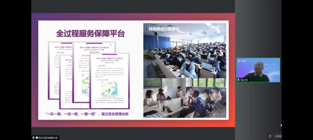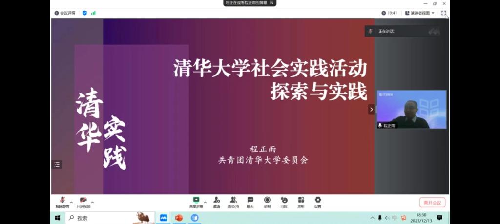12月13日晚,清华大学校团委副书记、全国乡村建设高校联盟副秘书长程正雨为bat365官网实践师生讲述了清华大学的实践育人体系、乡村建设高校联盟的行动进展、社会实践活动的功用与社会价值等内容。