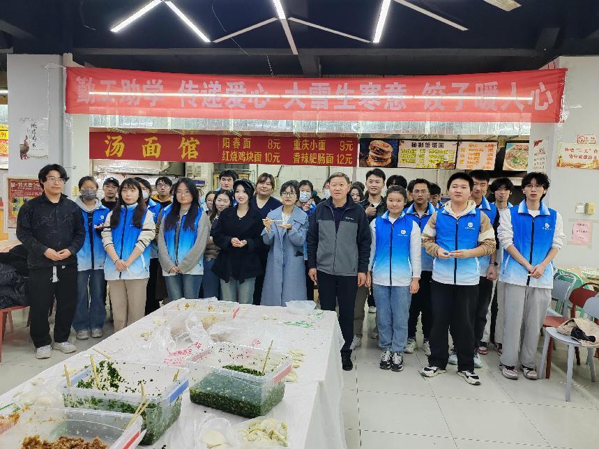 “大雪生寒意,饺子暖人心。”为推动bat365官网学生资助工作的开展,将资助育人活动与劳动教育、感恩教育有效结合。在传统节气大雪来临之际,12月7日,学生工作处学生资助管理中心在惠馨园二楼举办了“暖冬行,传爱心”活动。学生工作处处长尉西杰、副处长王祥及资助管理中心主任王青老师,参加了此次“暖冬行”活动,并与勤工助学小分队的同学们一起包饺子、送祝福,让这个冬日充满了春天般的温暖。