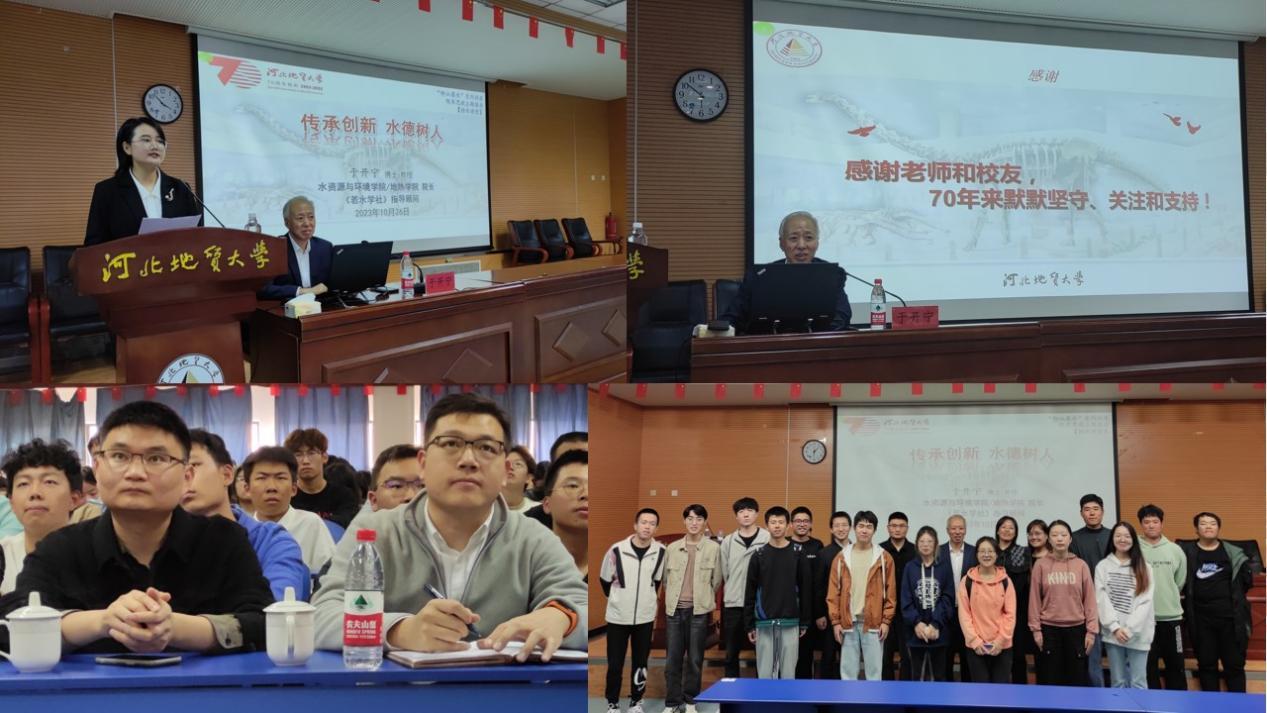 2023年10月,若水学社在水资源与环境学院院庆系列活动中,与学院共同举办“悟水讲堂”、“水悟人生梦想未来”文艺晚会、院长“传承创新 水德树人”主题报告会、“讲好伟人故事·欢庆七秩华诞”演讲比赛、“家乡水文化分享会”,参与学科专业建设研讨会暨校友座谈会、中国地质学会“三专委”年会等系列活动。在11月18日校庆当天,若水学社成员积极参加“98级校友座谈会”,听校友分享,感悟水情怀;举办了“水文化知识普及”活动庆母校建校70周年。