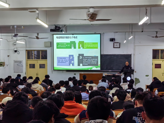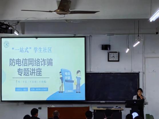 讲座中,胡警官结合大量常见的电信网络诈骗典型案例,对电信网络诈骗的概念、特点及常见电信网络诈骗形式展开讲解,重点介绍了电信网络诈骗的应对策略和补救措施。胡警官强调,同学们一定要学会保护个人信息,牢记反诈骗“灵魂八问”,才能更好地保护号自己的人身和财产安全。